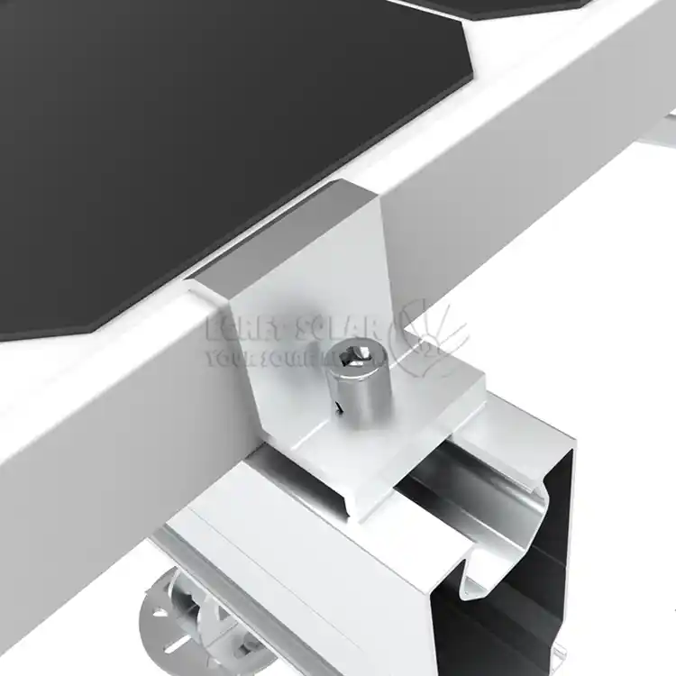 pengapit hujung solarmembetulkan bingkai komponen paling luar setiap baris ke hujung rel untuk mengelakkannya daripada tergelincir. Pada masa yang sama, menekan tepi komponen membantu mengurangkan pencerobohan angin, hujan dan habuk dari sisi. Ia terletak di pinggir tatasusunan dan secara langsung menanggung daya angkat angin terkuat (daya tarikan ke atas) dan daya sedutan angin, Ia adalah titik daya galas utama dalam reka bentuk tahan angin dan mesti mempunyai kekuatan mekanikal yang mencukupi.