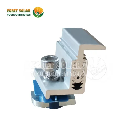 Egret Solar End Clamp boleh diselaraskan agar sesuai dengan pelbagai saiz panel solar dan ketebalan. Pengapit akhir panel solar boleh laras untuk kereta api keluli C sesuai untuk ketebalan panel 30-45mm. Saiz pengapit akhir laras ini boleh diselaraskan mengikut panel solar yang berbeza, anda hanya perlu memasangnya di lokasi sasaran, menjimatkan masa dan tenaga anda dan memudahkan pemasangan. Kacang berlian direka untuk kereta api keluli C untuk pemadanan yang baik.