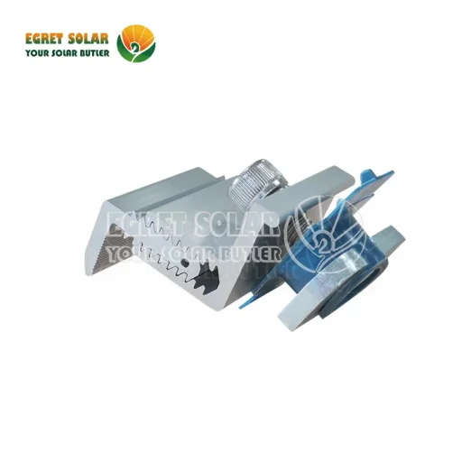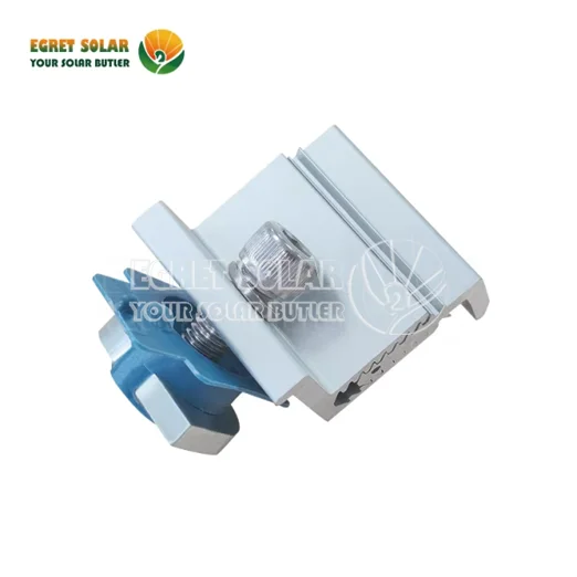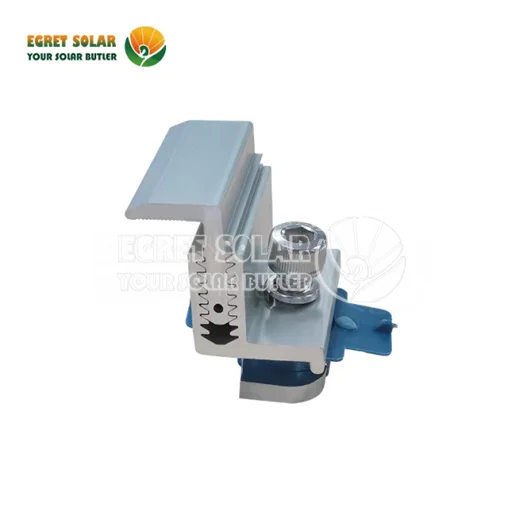 Egret Solar Panel End Clamp boleh laras untuk kereta api keluli C digunakan di hujung panel solar untuk menghalang mereka daripada mengangkat rel pemasangan di angin kencang atau beban salji yang berat. Mereka juga digunakan untuk menjamin panel solar ke landasan pemasangan di hujung panel solar. Pengapit akhir ketat dengan satu tangan untuk sambungan yang mudah dan selamat dengan menarik ikatan kabel melalui slot dalam plat.