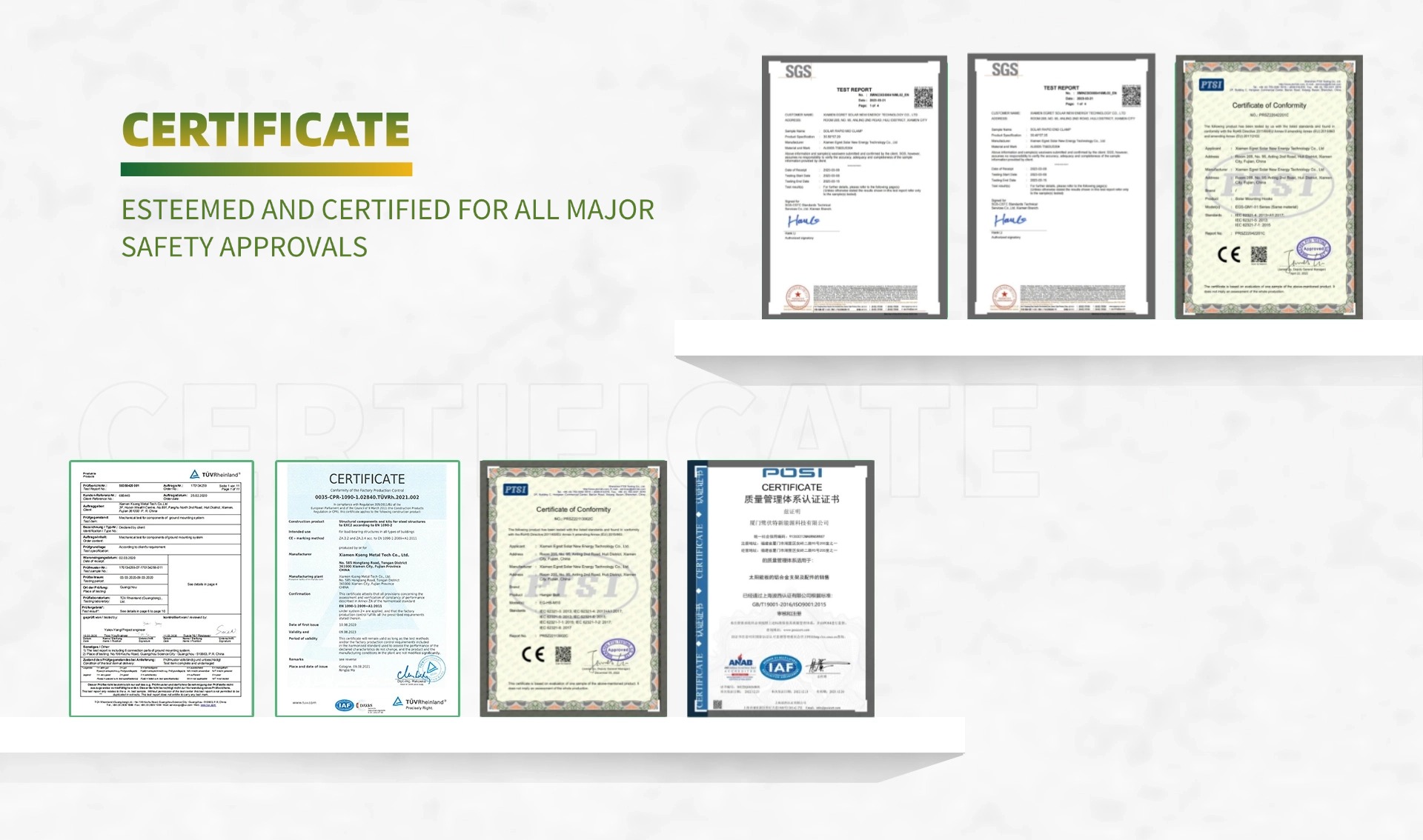 Egret Solar telah melancarkan pengapit bumbung solar logam trapezoid, yang sesuai untuk keperluan pemasangan PV pada kebanyakan bumbung trapezoid. Pengapit bumbung ini telah direka tepat untuk menyesuaikan kontur bumbung logam trapezoid, sama ada bangunan kediaman atau perindustrian.